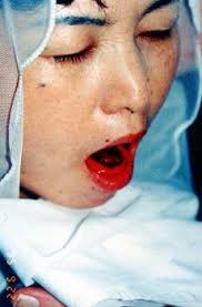 Ainda estava com a boca aberta após o grito de dor, quando as Hóstias Sagradas se desprenderam do Crucifixo e entraram suavemente em sua boca (a fotografia acima à direita, foi feita no exato momento). Frei Francis Su, dois outros sacerdotes e as pessoas que se encontravam ao redor da vidente, viram as Hóstias Sagradas se acomodarem na boca de Júlia Kim.